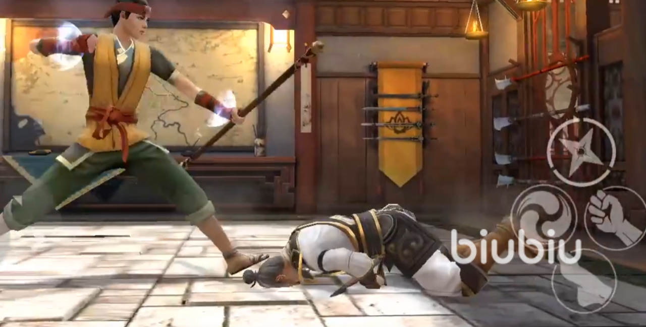 这个boss第一回合和第二回合的难度是不同的,第一回合大家可以在开局就连续向后撤两步,等待伽林向前逼近,然后他会使出一个回旋踢技能,这时候使用格挡把他的飞踢挡住,然后伽林会陷入一个比较长时间的后摇静止阶段,在这个阶段里先使用三段踢,然后再接一套棍子的花招,这套花招的第三段很容易会命中到伽林的头部,然后就会让他的棍子飞出去,没有了武器的boss再去打他就轻轻松松了。