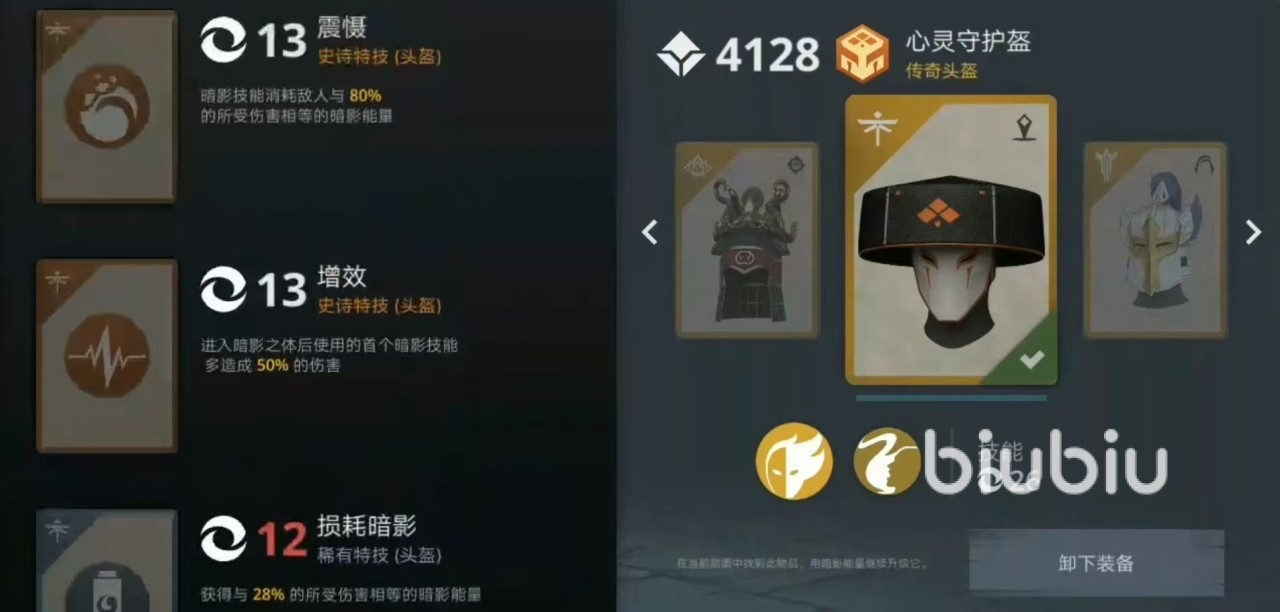 在技能选择方面,心灵守护盔小编推荐蒸发,敌人拥有暗影能量越多,造成伤害越大,伤害最多能增加到35%。震慑也是可以的,震慑效果是暗影技能消耗敌人80%所受伤害相等的暗影能量。暗影福利等级不够时就可以用震慑代替。苦敌大衣推荐伤害被降,这是保命神技28%的概率仅遭受一半的伤害。武器建议选择干扰,有16%概率在击中时阻止敌人在4秒内使用格挡。