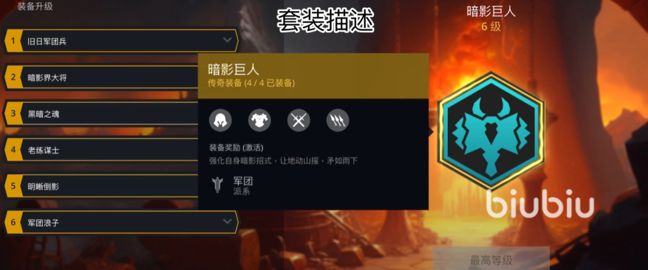 首先是这套装备的外观,它是一套以大锤为武器的装备,通体都是暗影基调,在打的过程中头盔处还会冒出特别炫酷的红光效果,宛如从暗影军团中出现的大力士一样,该套装所属的派系是军团派系,喜欢暗黑风格的朋友们应该会喜欢这身装备。