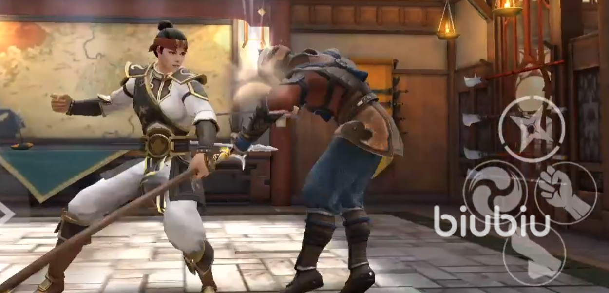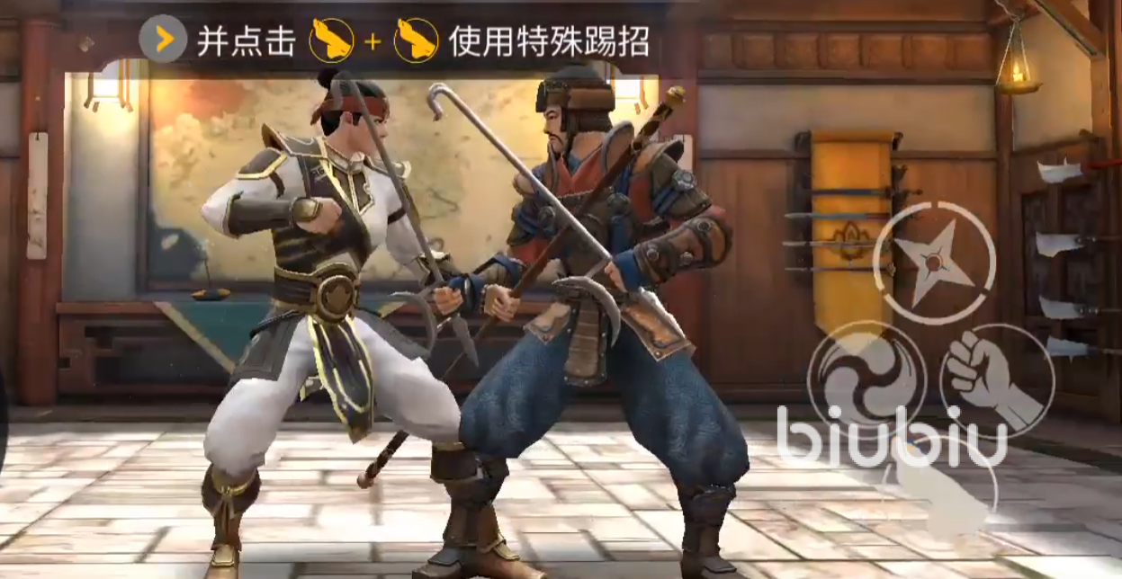 由于这一关在新手的主线剧情里是教学关卡,所以哪怕是在神级难度的关卡里在第一回合长官也会有一个很长时间的罚站空档,这时候按照指引使出腿技就能先打出一部分伤害,但是在困难的难度中boss被打以后会很快反应过来并且用钩子去钩玩家的腿,所以踢完之后要抓紧向后翻滚来躲避他的后续招数,因为腿衔接棍子的攻击有比较长的前摇,所以在这时候挥舞棍子是无法打断boss的攻击的。