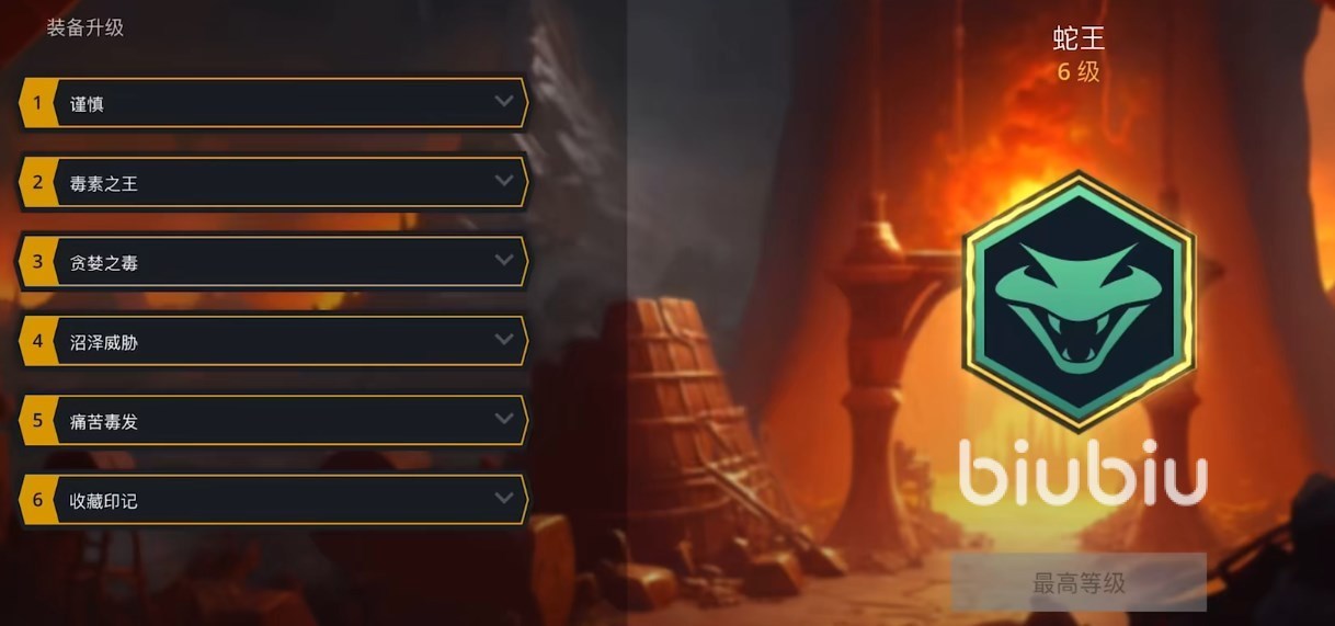该套装是属于王朝派系的。凑齐套装后会激活“蛇王”效果,可以使对手中毒并获得繁沃能量,有了这种特殊能量可以使用新的技能,后续升到6级更是可以解锁全部效果。