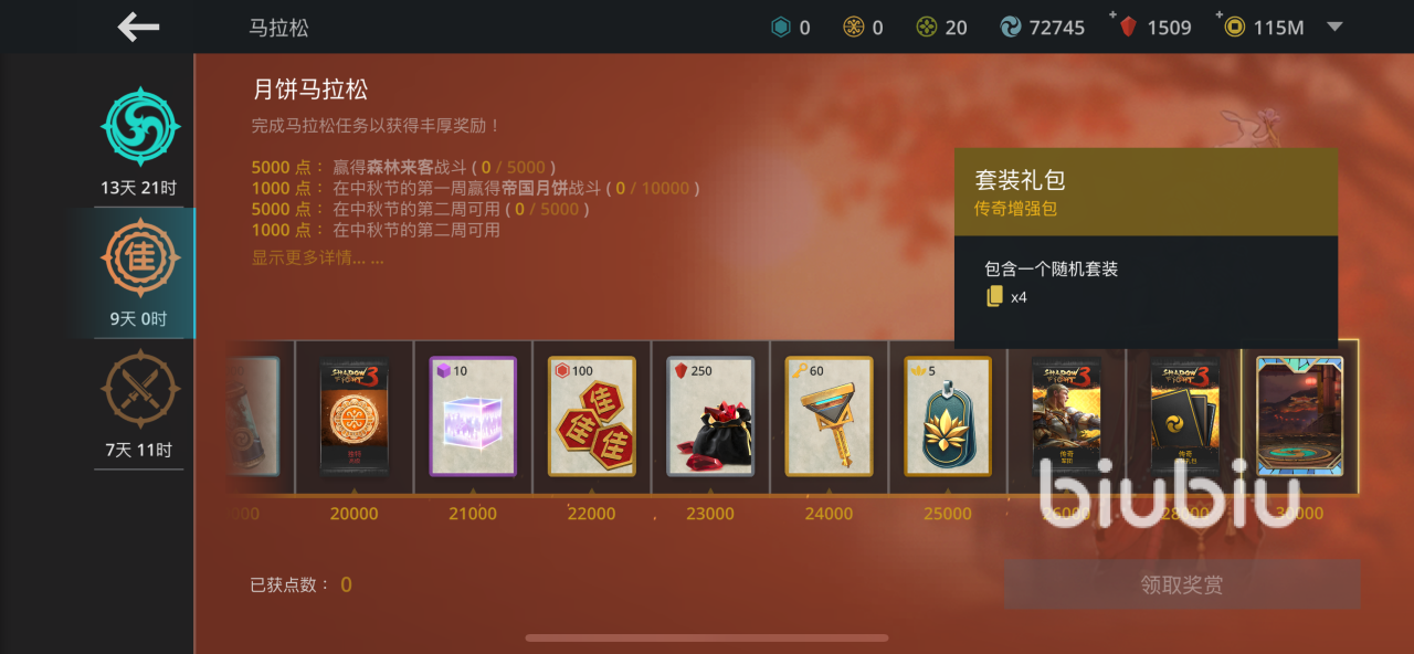 马拉松:至于马拉松相信很多玩家都特别重视,毕竟这是游戏内少有的可以获得大量不同资源的任务。这里比较难受的一个点就是每日boss的挑战是必须要玩家们开通相当于月卡的暗影通行证的,而绝大多数马拉松想要快速完成或者是拿到顶级奖还真就差这一点积分,所以认真决定入坑这款游戏的玩家建议购买通行证。活动专属卡包以及对应副本名称还有消耗对应的货币等等这些任务也都是比较简单的。