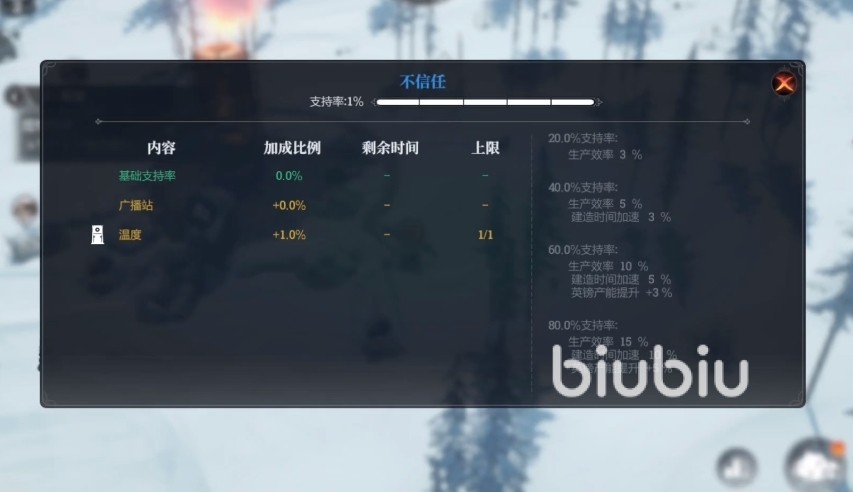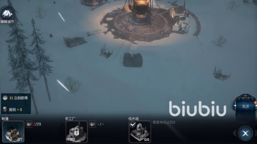 在该游戏中,故事模式作为核心体验之一,其中主要是通过剧情以及不同的策略选择来让玩家获得不一样的生存体验效果,其中的核心机制方面也是围绕着温度、资源以及民意三个方面展开。