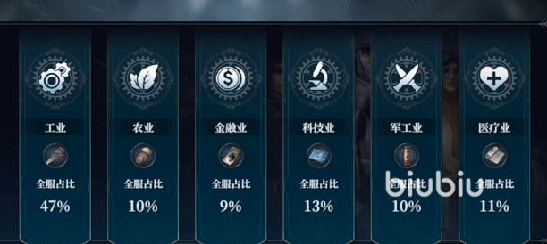 时间来到赛季开启后,在开启后大家需要先进入到自己的赛区页面,在赛区页面大家可以看到全服的发展方向,可以看到各行业的占比,在看到后大家需要做的就是选择最高占比的产业也就是工业。