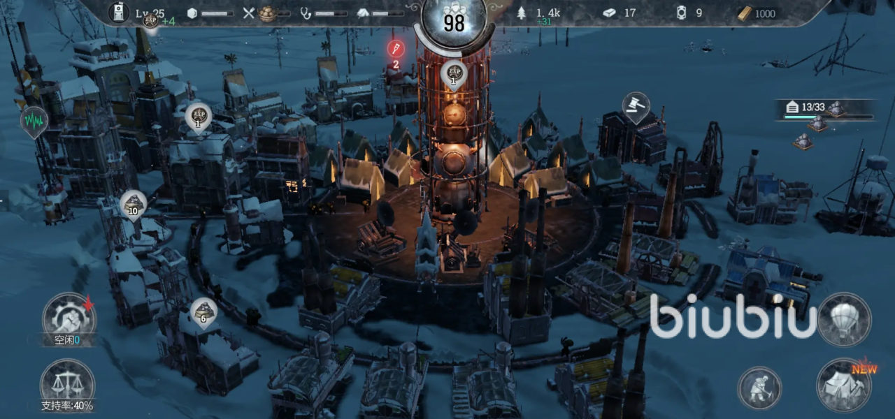 探险者小队的最大作用,就是帮助玩家开发城市以外的未知地区。玩家可以派遣探险小队深入冰原,在地图上的废墟、废弃工厂、坍塌避难所等地点进行调查,常常能带回大量木材、煤炭、钢铁等基础资源,甚至有几率获得极其珍贵的蒸汽核心,为后期建筑和科技突破提供关键支持。除了物资,探险者小队还可能发现被困在废墟中的幸存者。将他们带回城市,不仅可以壮大人口规模,还能缓解前期劳动力不足的问题。不过,探险的过程也并非一帆风顺,小队在外经常会遭遇恶劣天气、冰缝崩塌,甚至还可能遭遇凶猛的野兽袭击,造成成员受伤甚至死亡。这类突发事件不仅影响探险队的行动效率,还会大幅增加小队的损耗率。