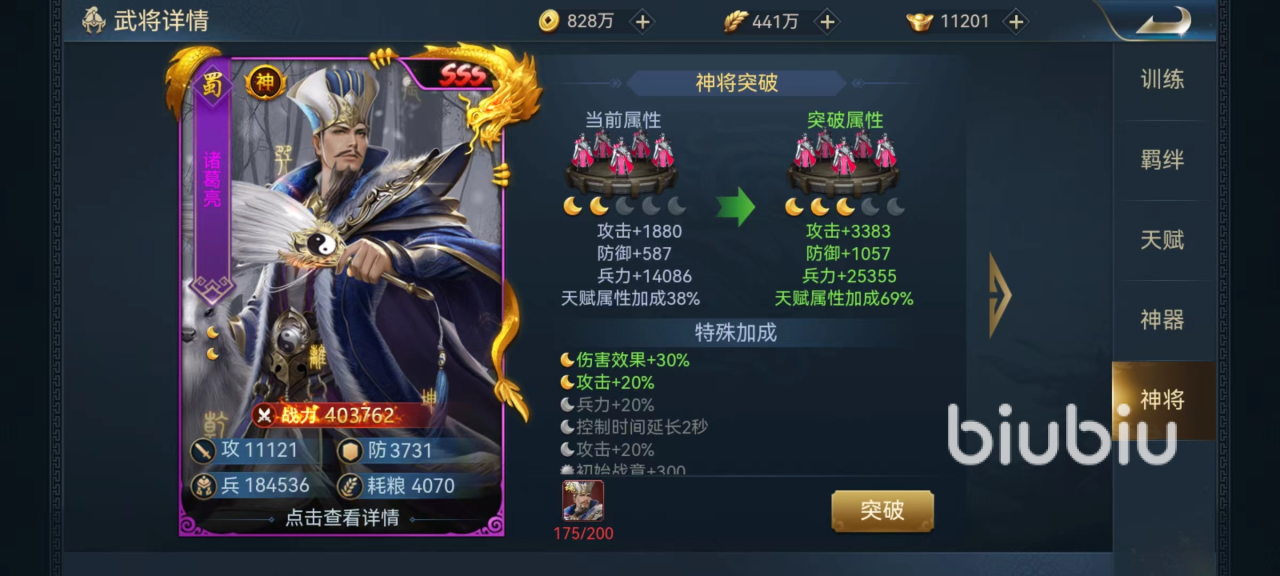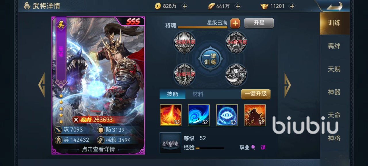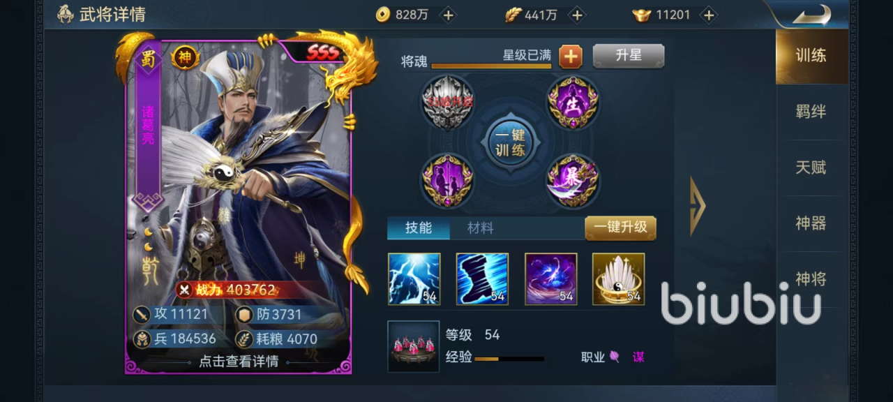 首先要了解一下诸葛亮的具体技能和定位,因为在新区开始的时候可以通过各个途径获得大量诸葛亮的碎片,所以在升星方面没有任何问题,很轻松就能达到满星。主要技能呼风唤雨,攻击敌方全体目标并且造成冰冻效果,如果伤害目标等级低于诸葛亮那么必定被冰冻,属于既有伤害又有控制的效果。通过被动技能影响,还将获得额外降低对方攻速、移动速度以及提高自身攻击力和谋略的加成,在场上绝对是很顶尖的输出。