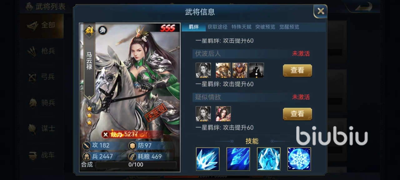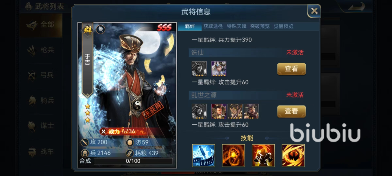 马云禄虽然不是无双型武将,但是自身实力依然非常强悍,可以对伤害目标造成冰冻效果以及自身获得防御护盾和防御属性提升,放到前排和张飞一起承担伤害。于吉最大的作用就是在释放无极兵法后,有很高几率使敌人防御或命中清零,一旦对方防御清零,张飞和关羽就能将他们全部收割。所以在后期于吉完全就沦为工具人。陆逊也同样如此,主要利用技能火烧连营来使对方陷入到灼烧状态。