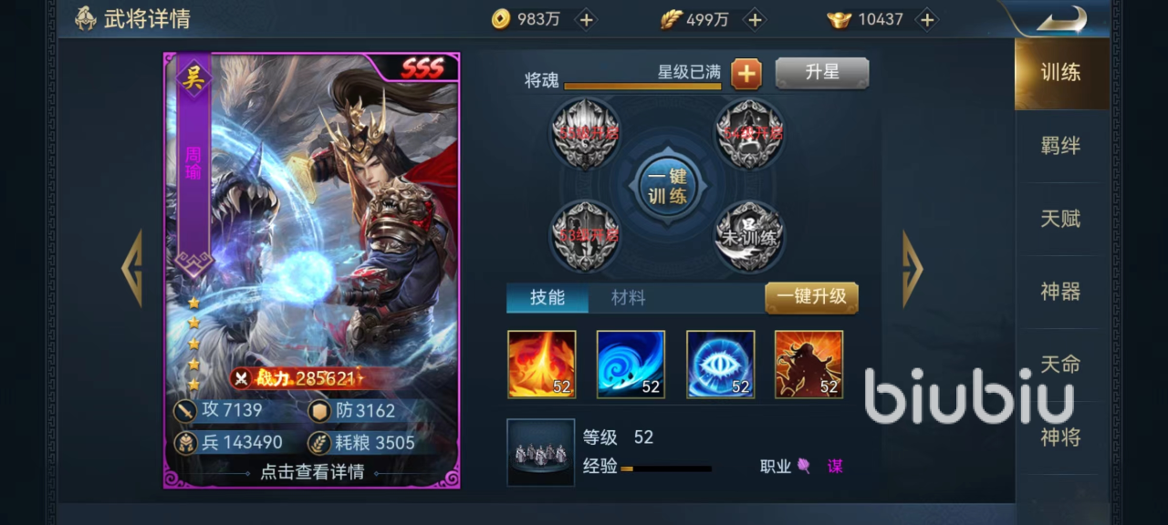而且诸葛亮自身技能比较全面,除了可以利用呼风唤雨攻击全体外还有冰冻效果,以及附加对敌方的减速功能。周瑜也是不能忽视的一名英雄,技能火烧赤壁可以对全体敌方造成伤害和沉默效果,和诸葛亮的冰冻一起叠加起来能够为队伍进行很好的控制。再加上进入战斗后可以提高自身谋略以及所有队友的攻击力,属于队伍中不可缺少的一员。