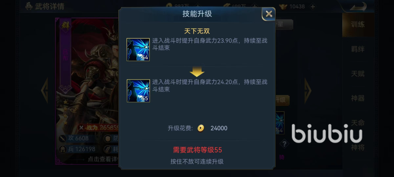 有了强力的技能还要看一下获取的途径是否广泛,因为后期无论升星还是激活天赋,都需要用到大量武将碎片。吕布虽然抽取的几率低一些,但是依然可以在酒馆中通过普通抽奖的方式获得,也可以在客栈中购买,到无双酒馆抽取也有一定几率获得将魂,所以整体提升的空间还是比较广泛的。
