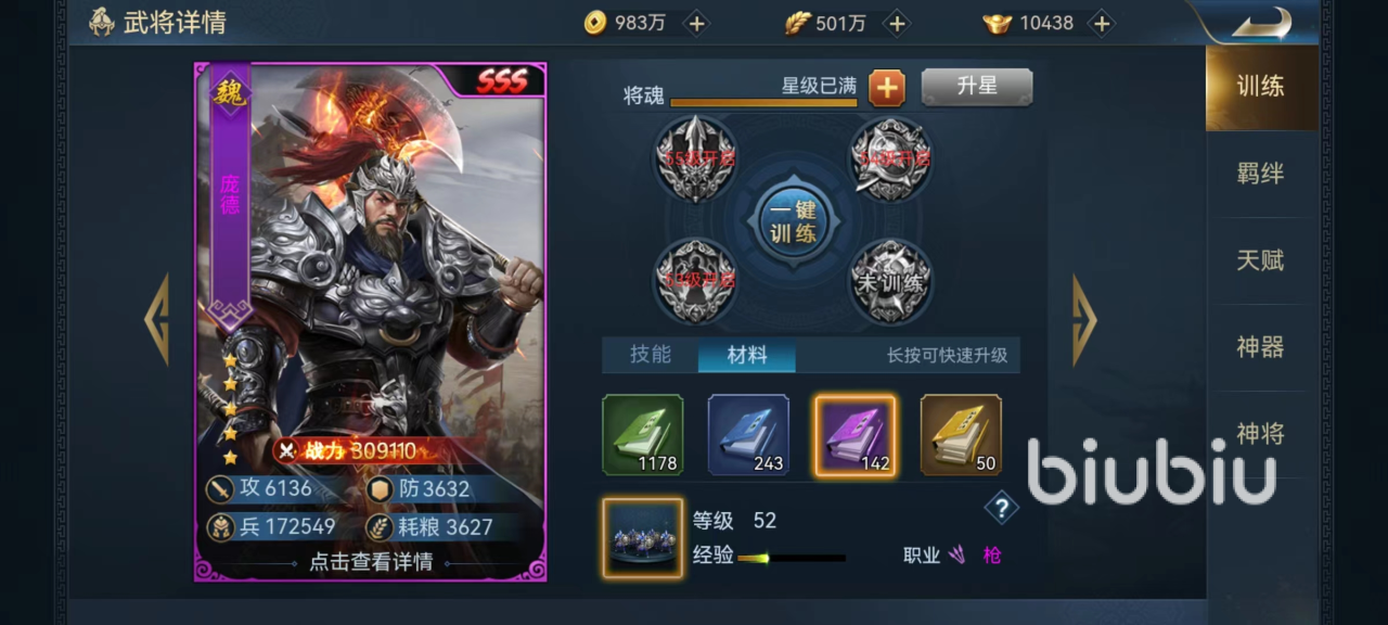 如果当前等级落后于世界等级,还将获得经验加成,在主公信息的世界加成里就可以看到当前是否享受这一项待遇。如果落后等级比较多,加成最多能达到100%,这样赶上大部队等级就会非常简单。解决完主公等级后,接下来就是武将的等级,升级比较简单只要消耗对应道具就能实现。在材料中可以看到有绿色,蓝色,紫色,橙色等不同品质的技能书,提供的经验加成也不同,优先选择主力武将升级,接下来才是其他的配角。