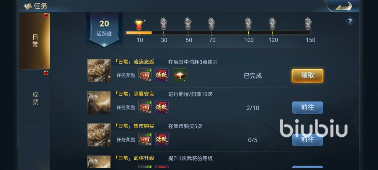 主公等级影响的范围非常广泛,尤其在战役中更是如此,很重要的最强王者,八门点兵,梦回沙场等都需要较高等级才开放。而且主公等级将影响其他武将的等级上限,武将级别不可以超过主公级别。要想提升主公等级,需要消耗的是各种经验,最主要的来源就是通过完成日常任务来获得。每天进行规定次数的剿匪、扫荡、购买资源或是提升武将等级,等完成这些任务后就有大量经验奉送,也是每天进入到游戏中最需要做的事情。