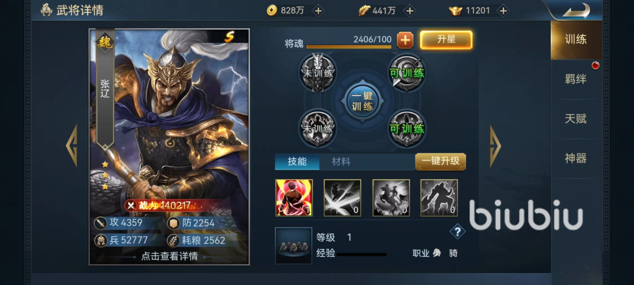 其中关羽无需达到无双,正常状态下就能胜任。利用技能伤害前方大范围内的敌人进行多次伤害,并且每阵亡一个队友关羽就将增加攻击力,可以叠加到战斗结束。本身进入到战斗时就将激活武圣状态,提高自身武力,所以关羽绝对是后期型选手,越战越勇非常适合最强王者这一项活动。张辽的技能特点是可以在开启后以消耗自身战意为代价沉默当前目标,并且使敌方持续减少兵力。如果场上的己方武将数量大于敌方单位数量,张辽的部分技能伤害将得到大幅提升。张辽的沉默也是非常好用的控制效果,限制对方使用技能,也就相当于直接废掉了对手的输出。