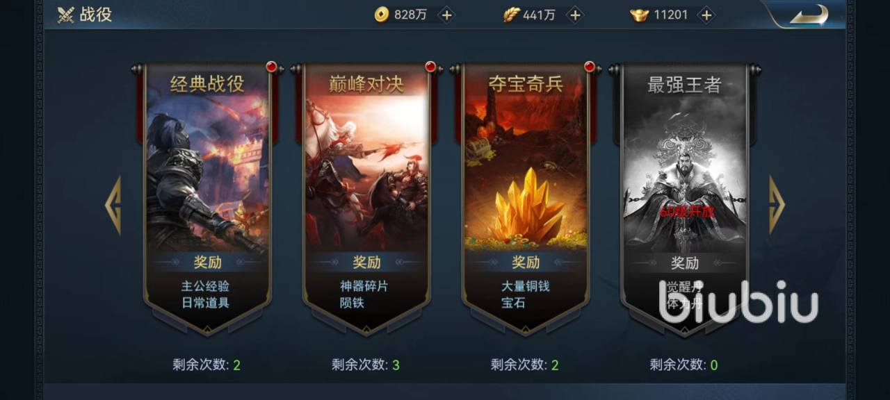要想进入到最强王者中,需要先将主公等级升到60级,然后在战役活动中就能看到。这是一项可以掉落觉醒丹和体力丹的重要活动,在中期培养武将的过程中能够起到很好的作用。这个活动有一定的难度,但是比较依赖阵容,如果能组成一套合适的组合,通关还是非常简单的。挑战最强王者的活动中,无论选择哪一套阵容,关羽,华佗,张辽这三名武将都是非常关键的角色。