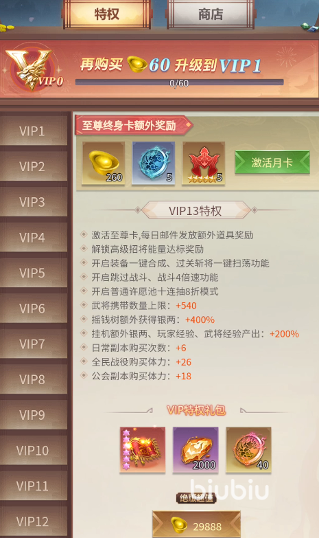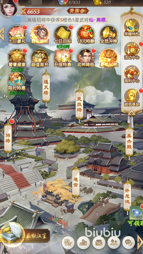 最后大家还想继续氪金的话,游戏中的vip也就是贵族也是一个比较推荐的选择了,这是因为游戏中的贵族附带很多的特权奖励,像是神器、s级武将这种都是可以通过充值贵族来获取的,因此手头比较充裕的小伙伴们给贵族充起来之后,自身的发展进度会有一个飞跃式的体验。