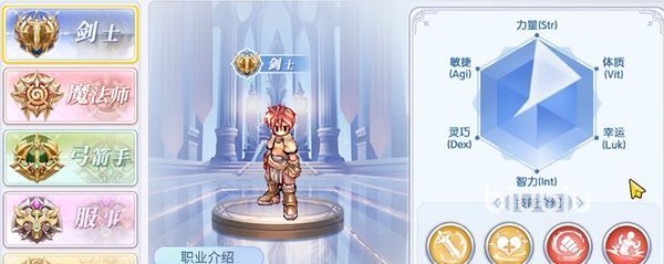 剑士:他的攻击距离比较短,是属于近战职业的代表,从他的属性面板中可以看出来,他的攻击以及防御都是非常强的,可以在战斗里面担任主输出,而且技能方面也是非常全面的,不仅拥有单体攻击,而且还有群攻技能,并且身兼不俗的防御。