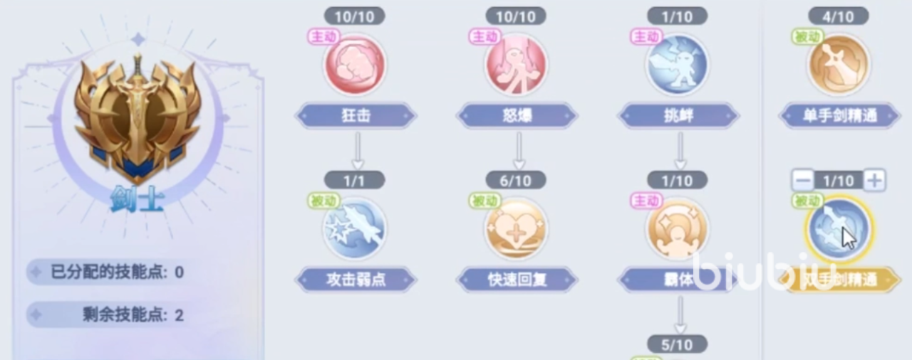技能加点:攻速恢复被动加满,怪物互击+单双手剑攻速增加+反击+霸体+狂击。依靠被动技能攻速加强,普攻打击非常高。