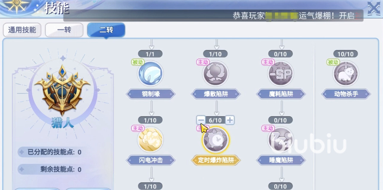如果你打算玩控制流射手的话,还可继续点两个陷阱技能一级,可以起到控制效果,PVP作用更大。接着定时陷阱和魔法陷阱等技能也可以升到最顶级,可以提前埋伏好敌人,让对方防不胜防。