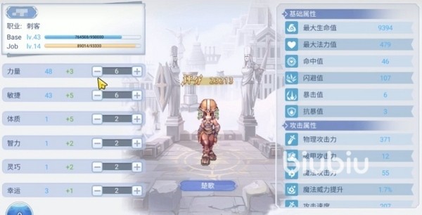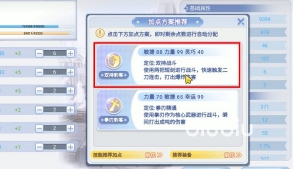 首先是力量,力量属性提升的是物理攻击力,所以直接拖到最大值的99,有了力量属性才能保证有足够的输出。力量点满后其次是点敏捷, 敏捷会提升攻击速度和闪避值,也是刺客职业必不可少的属性。至于其他属性灵巧和幸运也是可以适当加一点的,灵巧属性的提升可以增加玩家的命中,幸运属性则是提升暴击。大家可以根据自己的需要去点,如果是打pk的话,灵巧会重要一点,因为很多职业的闪避值特别高,尤其是当刺客遇到刺客的时候。