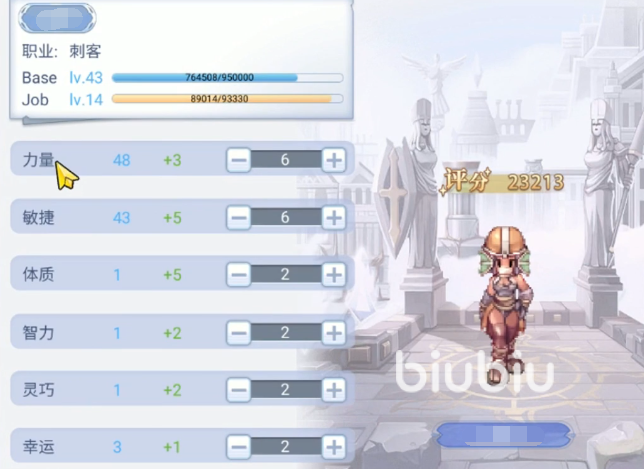 首先要带大家看的是职业属性的加点,属性方面在游戏初期大家需要主加力量和敏捷属性,需要将力量和敏捷属性拉到拉不动为止,这样大家在前期阶段就会获得高暴击、命中和攻击。
