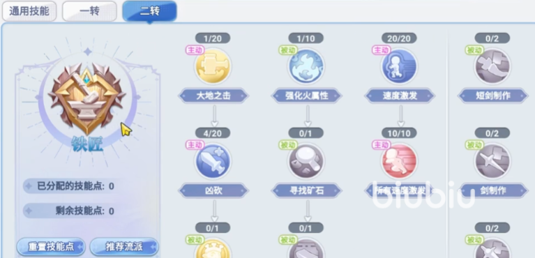 二转技能加点也是同理,主要以被动叠加增益为主,“速度激发”点满20级,瞬发150蓝耗1分钟冷却,可以在30秒内提高自己172点的攻速。然后还有该技能的进阶技能“所有速度激发”也点到10级,能在10秒内提升184点攻速和50%移速,让爆发更强。“强化火属性”点1级,可以减10%受到的火属性伤害,点1级就好,点多了收益反而不高。“大地之击”1级,进阶的“凶砍”点到7级,可以提在30秒内提升物攻。二转39个技能点就按照这个加点顺序与优先级去加即可。