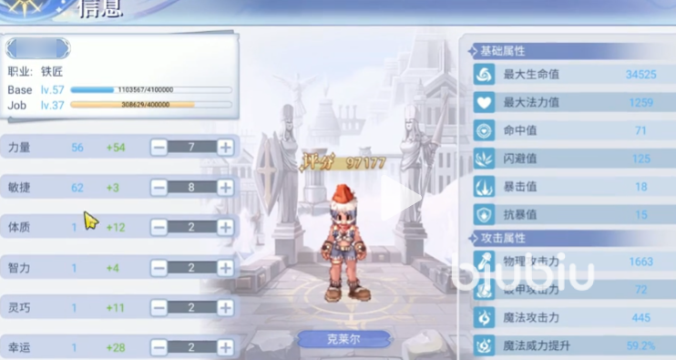 除了技能几点另一个非常重要的便是属性加点,铁匠属性加点通常是主力量副敏捷,当把力量和敏捷都点满到99点之后,再将多余的属性点给到幸运上面就行了。