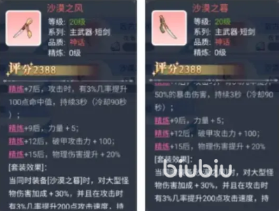 在获得后开启就有概率开出神话品质装备,其中就有沙漠之幕和沙漠之风这两把神话短剑。之后是第二种获取途径,也就是拿副本的mvp获得,在游戏中大家会看到一些有装备掉落的副本,这些副本有的是会掉落随机神话装的。