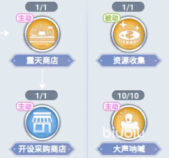 资源收集,这个也是商人的核心技能,它的作用便是让玩家们在获取资源的数量和概率都会得到提升。这也让商人在同等的时间和效率下能获取比其他职业多不少资源的原因。此技能也是只有1级,玩家们需要在中期之前将其点上。