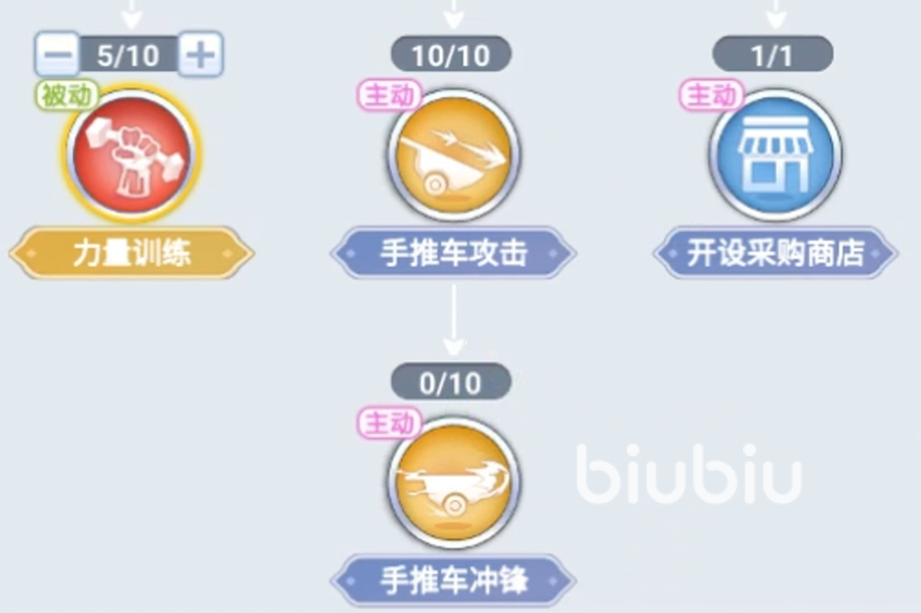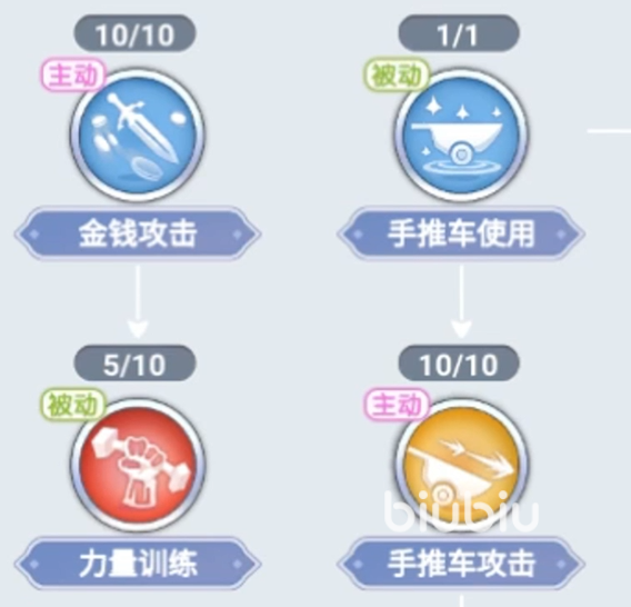 技能的等级越高,所造成的伤害越大。这个技能建议在中期之前将其点满,因为此技能是商人比较少的输出类型的技能,而且此技能本身的输出能力很强。我们在攻击不够的情况下是完全可以使用这个技能来进行输出的。接下来第二个技能是力量训练,这个技能主要是提高玩家们本身的STR,这个属性是增加玩家的输出和负重能力。因为是被动技能,如果玩家们对于自身的输出能力觉得有些低的话,是可以将这个技能给直接点满。