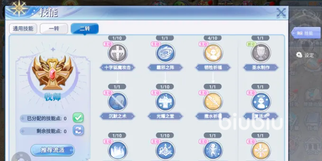 二转之后则可以考虑用洒水祈福,钝器精通以及天使之怒,这些技能都是能帮助大家提高牧师的物理攻击能力的,此外物理防御,魔法防御以及一些移速和敏捷度,攻速都有提升,所以牧师在输出的时候自身也是可以承担来自敌人一定的伤害的,同时还可以给自己的队友叠加一些好的增益效果。