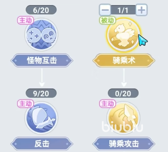 在拥有攻速的基础上也有着非常高的输出能力。接下来我们便来介绍一下骑士的技能。首先骑士的第一个技能是怪物互击,这个是骑士的主要输出技能。它可以让敌人进行互相的撞击从而造成伤害。对方的体型越大,便越能产生更高的伤害。这个技能在清理普通敌人的时候的效果是非常好的,所以玩家们可以优先将其点满。这样练级的效率将会大大提升。骑乘术,让骑士可以将大嘴鸟作为坐骑来进行使用,大嘴鸟可以增加移动速度以及攻击速度。
