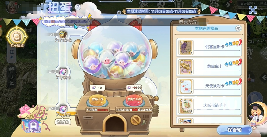 另外大家如果参加扭蛋的话,会发现扭蛋免费冷却的时间也减少了一半,也就是说比起平时大家多了一次抽取扭蛋的机会,是新人小伙伴开这个福利的话会划算很多,尽早的把扭蛋里的的东西都抽到。