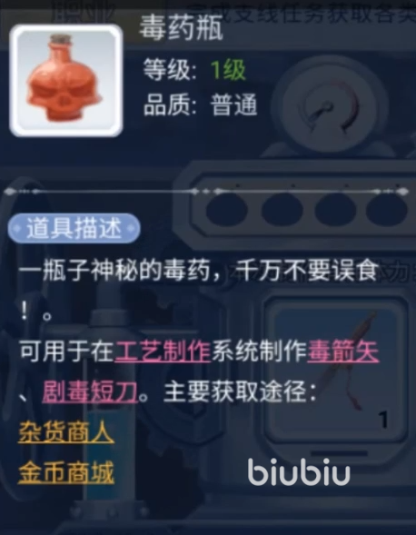 这两个道具其实都可以在主城的商人那里买到,毒药瓶在道具商人那里,短刀是在基础武器商人。剧毒短刀攻击力不算高,但是其本身对敌人进行攻击的时候可以以很高的概率让其中毒。
