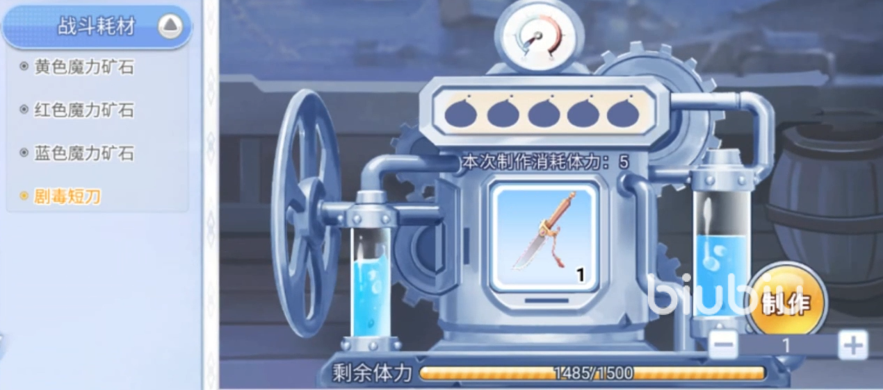 玩家们在学习剧毒短刀制作之后,便可以在工艺手册里面直接制作剧毒短刀。在制作之前,玩家们需要先备好制作的材料才可以。材料只需要两个,分别是毒药瓶和短刀,在材料满足条件后便可以制作剧毒短刀。