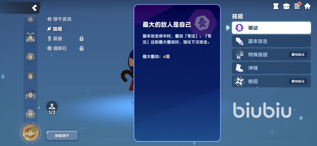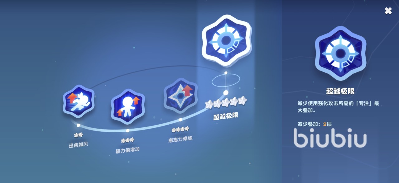 因为这个角色自身品级限制,所以在后期肯定会存在属性方面缺陷,不过它的优势就在于获得简单,很容易就能提高到高星级。在升星之后使用强化攻击命中可以提高忍者饼干风属性伤害,还能增加强化攻击伤害,达到五星时更是可以减少强化攻击所需要的专注层数,能减少两层。这样就能实现更快叠加起来触发强化效果,所以整体攻击循环还是很不错的。