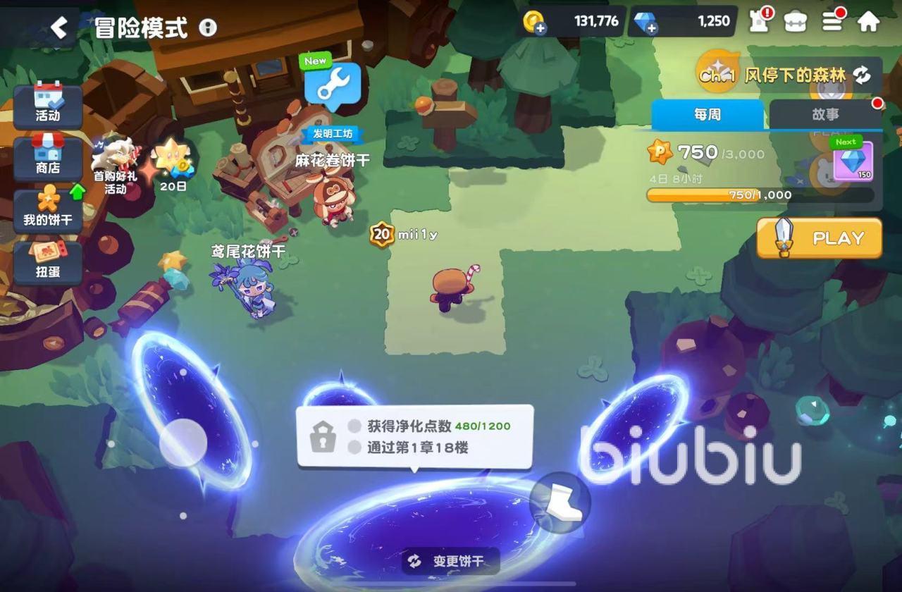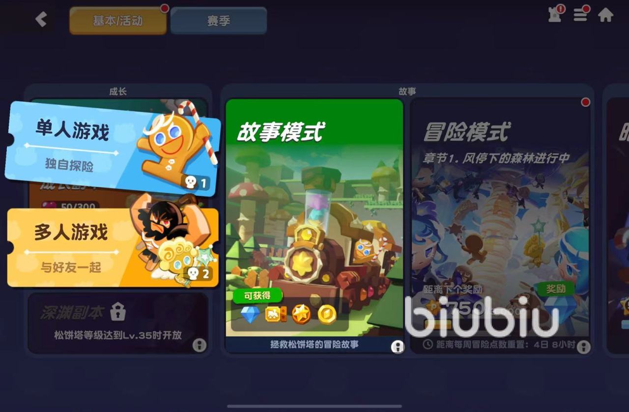 接着是冒险模式,和成长副本相比,这里的挑战难度更高。 同样也分为了很多个阶段,但不同的是这里能够选择随机的记忆果酱石以及庇护,对角色不了解的朋友们能通过冒险模式了解到很多自己目前并未拥有的角色。如果有喜欢的饼干人,冒险模式也是解锁它们剧情故事的主要场所,其中奖励丰富,值得挑战。最后是分裂之塔,这里能掉落的材料比起之前几个副本来说要更多样,装备和属性潜能卷轴都能来这里刷取。总的来说,这游戏开荒难度不算高,可谓非常轻松,新人直接跟着这个顺序来游:推图——>成长副本——>松饼塔任务——>冒险模式——>分裂之塔,就能轻松上手。这样既能够获得不错的练度,也能在过程中积累大量道具,同时熟悉角色和各类关卡机制,有助于后期的游玩和养成。