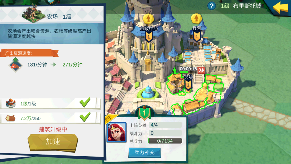 2、部分城池可以建设农场,农场会产出粮食资源,农场等级越高产出资源速度越快。