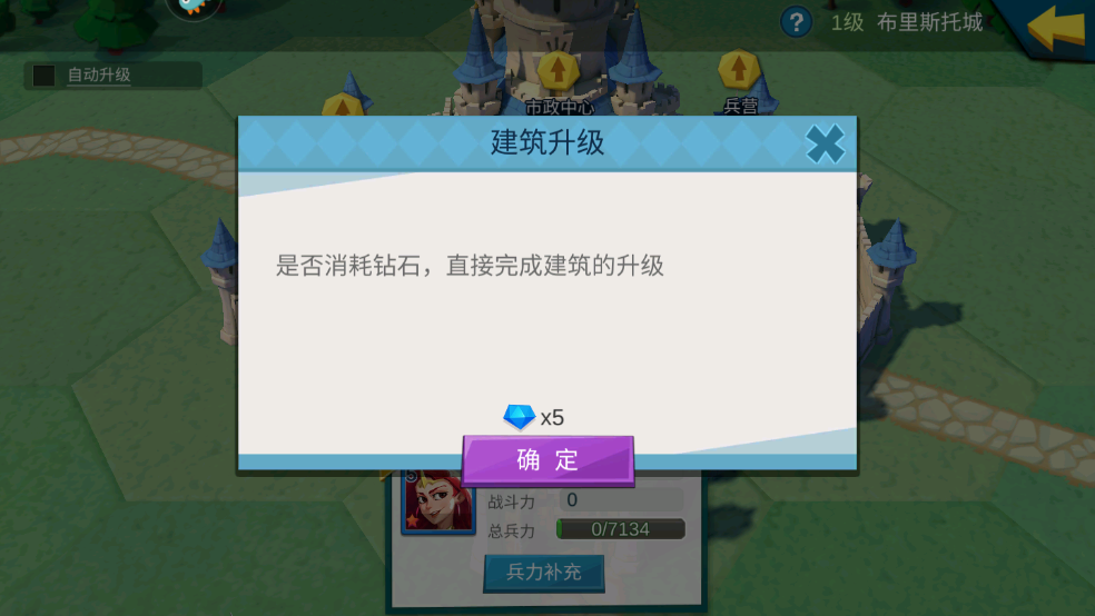 3、农场升级时需要消耗时间的,如果消耗钻石那么可以直接完成建筑的升级,小编个人是不推荐大家这样使用钻石的。