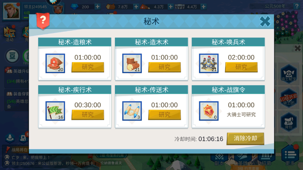 1、在战局中使用可获得10000粮食食,这个是消耗道具使用之后就会消失,每一局秘术—造粮术的使用次数是有限制的,因此在不缺的情况下可以先不使用。