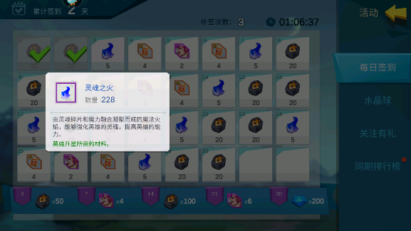 2、每个月的补签次数是有限制的,如果可以保证长期登录,那么系统会额外赠送捡到补签次数。