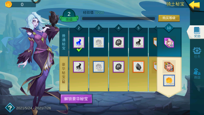 1、骑士秘宝开启时,领主大人完成每周任务和骑士挑战任务,提升骑士秘宝等级,可获得大量等级奖励。领主大人可购买豪华秘宝,获得丰厚的额外奖励。