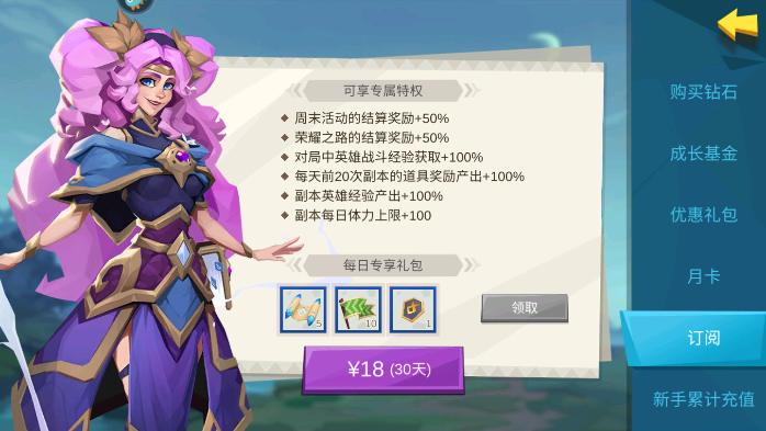 2、订阅:订阅也是不可获取的,订阅后可以加快游戏资源的产出。买了订阅和没买的差距非常的大,和月卡配合一起使用性价比非常的高。