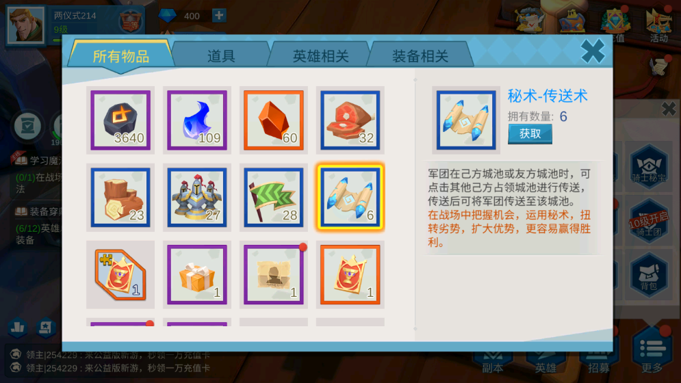 2、秘术—传送术:每一局传送术的使用次数都是有限制的,因此最好在路程较远时,或者是关键时刻使用。