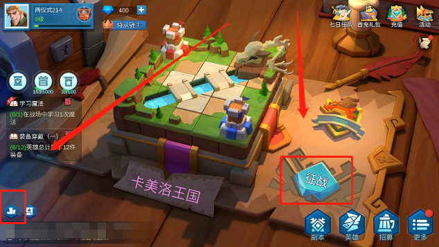 (1)查看自己爵位:进入到游戏中的主页面位置,点击左上角的领主头像,在该界面可以直接看到当前的爵位等级。依然是进入到游戏中的主页面,点击中间位置的“征战”按钮,点击选择“荣耀之路”,在这里也可以看到爵位等级。