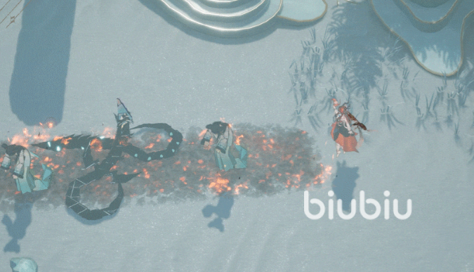 在招式释放后龙和还会进入到“海崇”状态,状态存在期间,能触发自动技的增益效果,且暴击率提升,龙和每进行数次普攻,还会以一个命中敌人为中心造成范围伤害,且两侧生成2把龙剑来攻击该目标,这个效果一旦触发,普攻每额外命中1位敌人,就可以扩大炎属性伤害范围。