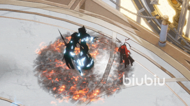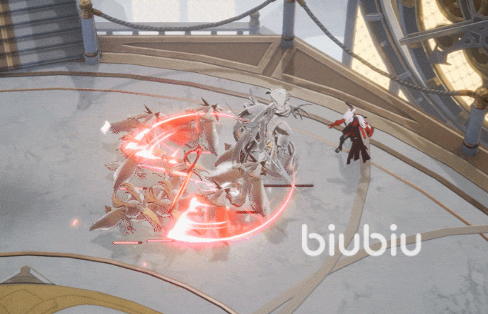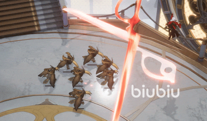 她的主动技会朝着前方丢出剪刀,剪刀在达到指定位置后会进行攻击,对范围内的所有敌人造成炎元素输出,并对一路上接触到的敌人也造成炎元素伤害,同时获取到一定量的翦羽,并提升“纸上劫火”等级,当其等级达到一定时,每一段伤害都可以无条件额外对敌人触发1次“爆燃反应”。