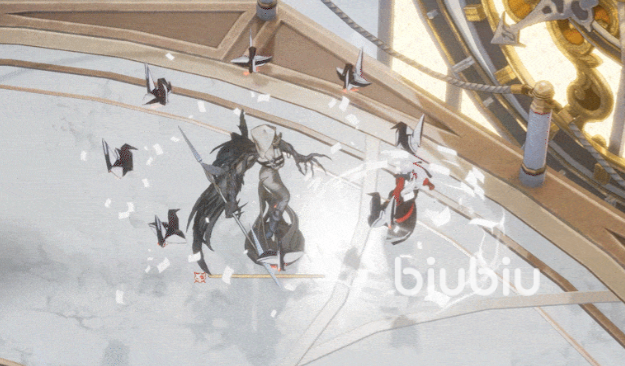 她的自动技“千羽陷阱”会对当前敌人放出8只分身纸鹤,纸鹤在碰撞到敌人后会发生爆炸,对范围内所有目标造成伤害,并在敌人的脚下生成一定范围的炎元素区域,当“纸上劫火”达到一定等级,每次使用该技能后,还会为自身回复一次主动技的次数。