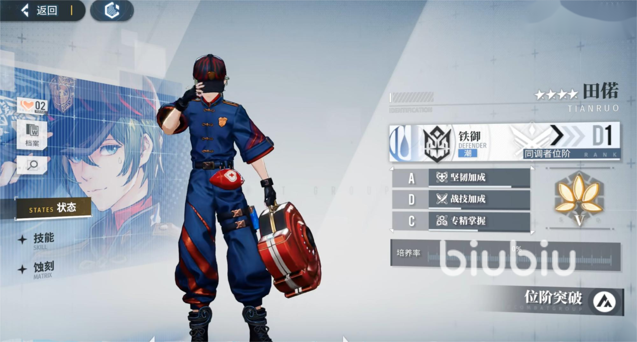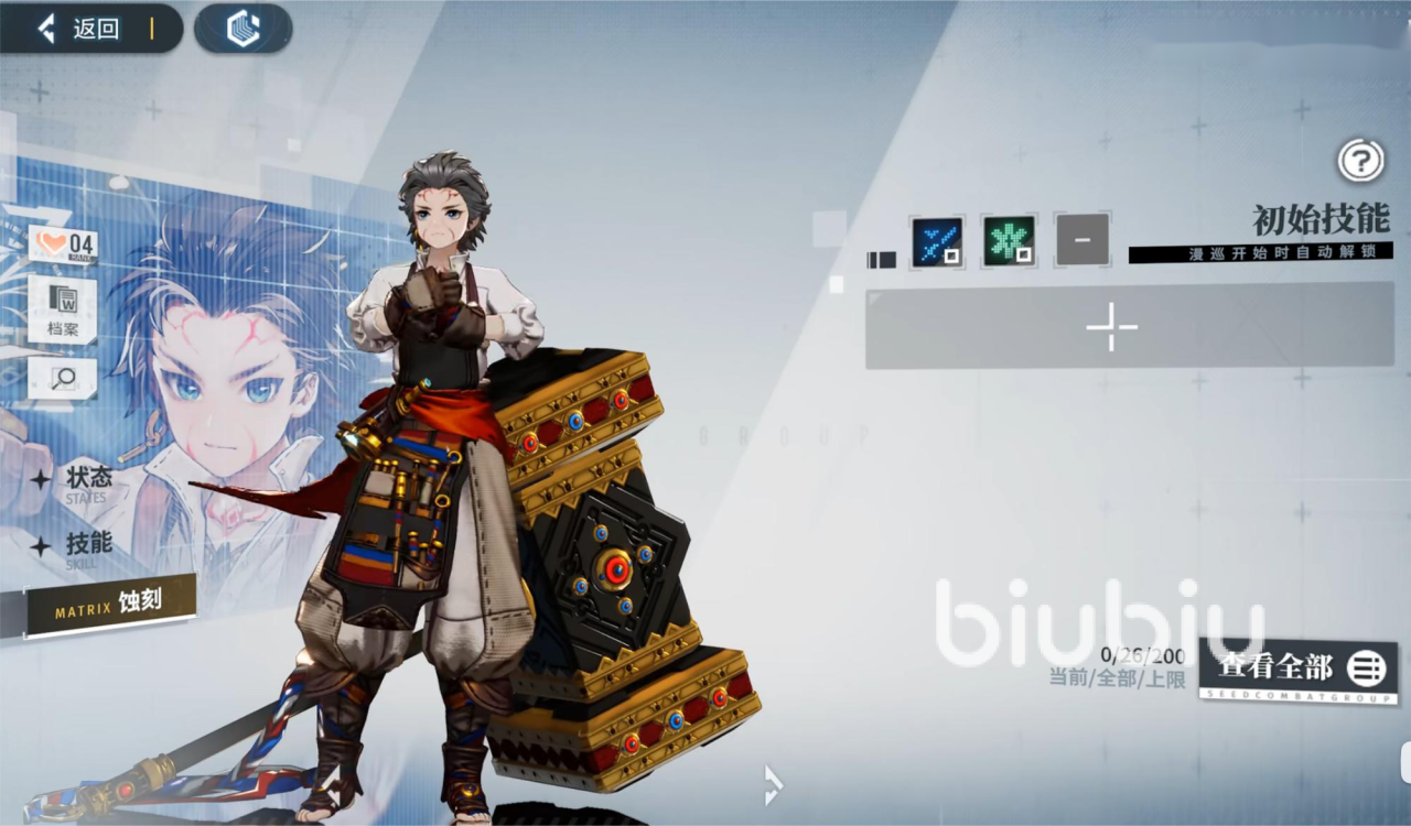 感觉有些低调的田诺,潮属性的角色擅长的是防御也就是坦克的定位,该角色头戴棒球帽,然后随身携带着巨大的铁皮箱子给人一种神秘又有安全感的感觉。