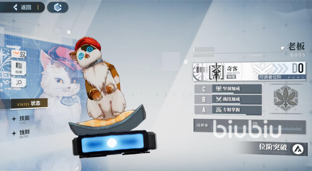 作为可以选择的角色品质相对于其他人型角色肯定要低一头的,不然被一只猫打败人生也太失败了,主要的定位也是作为辅助角色协助其他角色作战的。