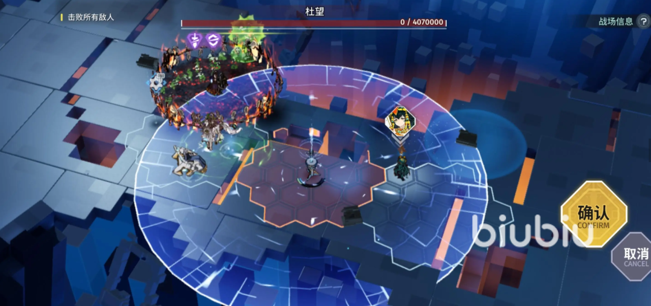 通常情况下,在面对一些大型副本的时候,到了后期我们的蚀刻属性叠上来,达到3500以上的时候。经常遇见我们瞳大招还没好一些boss就已经死掉的情况,唯一要多注意一下的是就是站位,如图所示,让队友尽量顶在前排,靠大哥输出的同时,还要稍微注意一下侧面的杂鱼小怪,如果发现有稍微来不及输出,导致终端掉血,可以让盾去中间分摊伤害,并且随时准备派苏莜给盾复活。简单来说,由于属性加成全给大哥,其他方面就尽量的轮换,当工具人使用,奶妈放完技能大招就等后排CD,然后盾顶上前排换取一定的时间,让大哥输出。