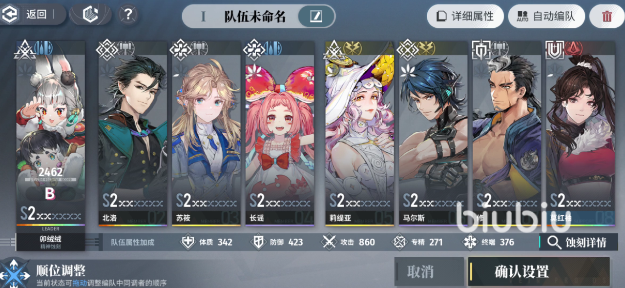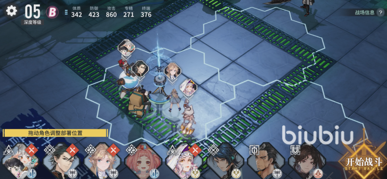 在游戏开始的情况下,玩家们需要进行队伍进行部署。一般战斗开始的时候就会上四名角色,其余角色属于一个后排冷却状态。游戏有一点做的很不错的,就是后排冷却状态的角色,其技能CD也是进行冷却的的,所以说轮换上场放技能是游戏的核心玩法之一。